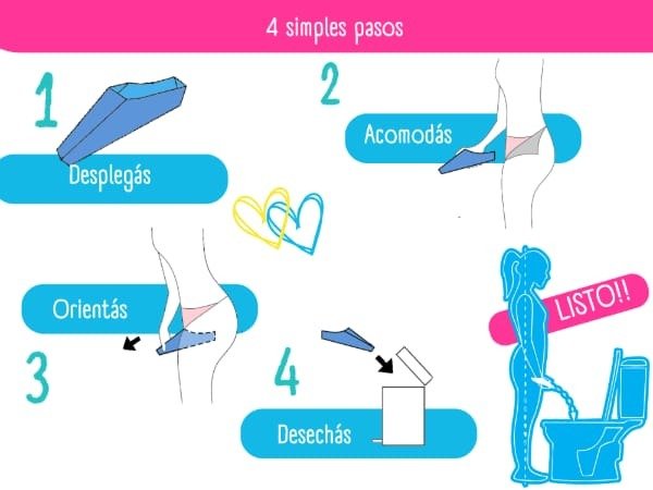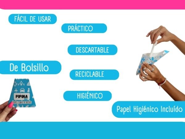 Dispositivo Pocket y Descartable para orinar de pie, ideal para mujeres de todas las edades. Ergonómico. Util en los post-operatorios, para las embarazadas, las convalencientes. Para evitar todo tipo de contacto con los inodoros, evitando contagios, ensuciarte o retener el deseo de micción por falta de ellos. Podés usarlo en baños tanto como al aire libre. La boquilla de salida se adapta para utilizar en el pico de una botella si no pudieras usarlo al aire libre. Ideal para las niñas que deben ir solas al baño y por su altura rozan el asiento del inodoro. Excelente para las mujeres que ya no pueden hacer de cuclillas.