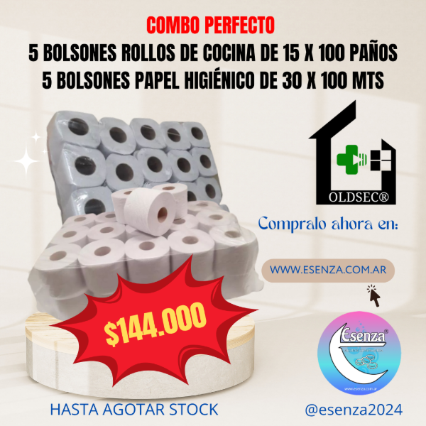 5 BOLSONES DE ROLLOS DE COCINA DE 15 X 100 PAÑOS